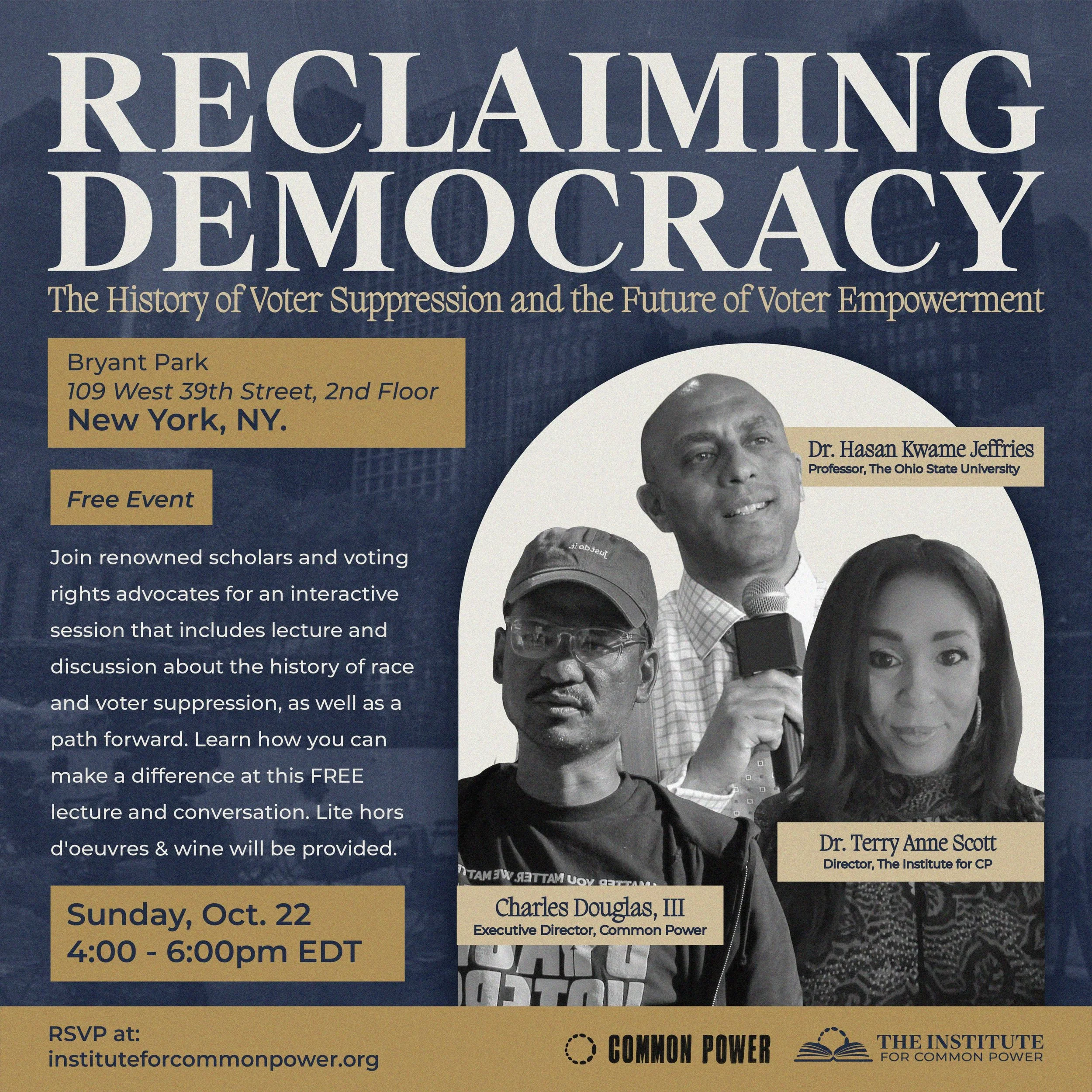 At the Institute for Common Power, we believe that Education leads to Action. That is why we created this interactive, in-person series designed to teach you about the history of voter suppression and what you can do to create change.